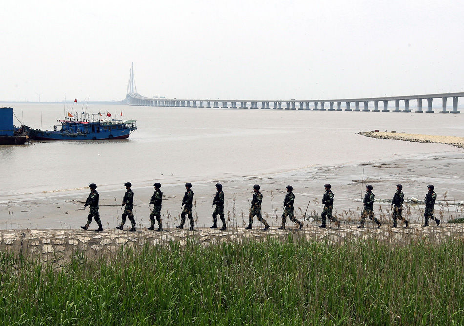 5月15日,武警官兵在上海長(zhǎng)江水域武裝巡邏。亞信峰會(huì)臨近,擔(dān)負(fù)上海長(zhǎng)江隧橋和重要隧道警戒任務(wù)的武警上海總隊(duì)四支隊(duì)全面進(jìn)入“峰會(huì)時(shí)間”,時(shí)刻保持箭在弦上,確保警衛(wèi)目標(biāo)萬無一失。
