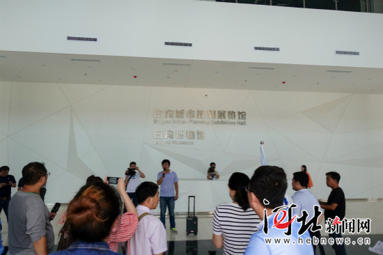 圖為采訪團(tuán)在白溝城市規(guī)劃展覽館參觀。攝影:趙杰