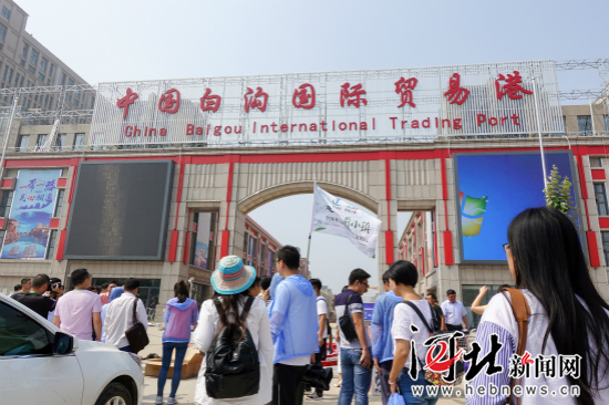 圖為采訪團(tuán)在白溝國(guó)際貿(mào)易港參觀。攝影:趙杰