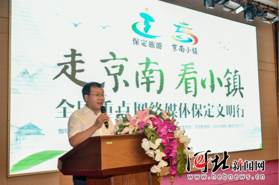 圖為高碑店市委常委、副市長(zhǎng)張衛(wèi)強(qiáng)向采訪團(tuán)介紹該市籌備首屆保定市旅發(fā)大會(huì)情況。攝影:趙杰