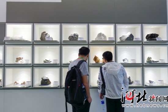 圖為采訪團記者在白石山地質(zhì)博物館參觀。攝影:趙杰