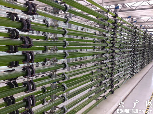 該實(shí)驗(yàn)室中展示的微藻生物固碳技術(shù)是該集團(tuán)技術(shù)創(chuàng)新的重要組成部分。它是利用微藻光合作用吸收工農(nóng)業(yè)生產(chǎn)過(guò)程中排放的二氧化碳等廢棄,通過(guò)低成本收集和高效油脂提取等后處理技術(shù),聯(lián)產(chǎn)生物柴油、保健品原料和飼料添加劑等產(chǎn)品。據(jù)稱(chēng),目前該技術(shù)已成功入選國(guó)家高技術(shù)研究發(fā)展計(jì)劃(863計(jì)劃),并獲得專(zhuān)項(xiàng)基金支持。內(nèi)蒙古達(dá)拉特旗已開(kāi)展國(guó)家級(jí)微藻生物能源產(chǎn)業(yè)化示范項(xiàng)目。原本平凡的微藻泥,竟然成為了生物柴油和食用油的來(lái)源,這項(xiàng)技術(shù)不僅帶來(lái)了環(huán)保開(kāi)發(fā)、高效開(kāi)發(fā),還實(shí)現(xiàn)了零排放,實(shí)在可謂神奇。