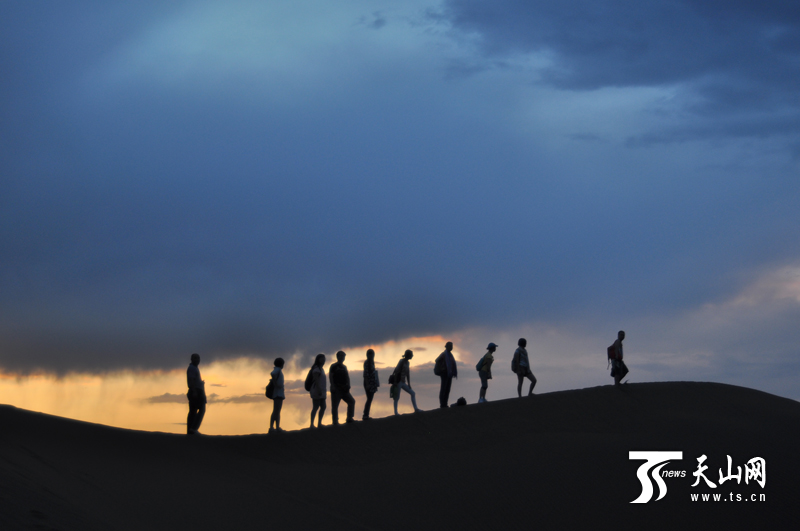 天山網(wǎng)鄯善訊(記者許釋文攝影報(bào)道)“大漠與藍(lán)天交相輝映,金色沙漠依偎綠洲。實(shí)在太美了!”8月21日,2014全國(guó)重點(diǎn)旅游網(wǎng)絡(luò)媒體采訪(fǎng)團(tuán)來(lái)到新疆鄯善庫(kù)木塔格沙漠,走進(jìn)沙山深處觀賞晚霞,陶醉其中久久不能自拔。