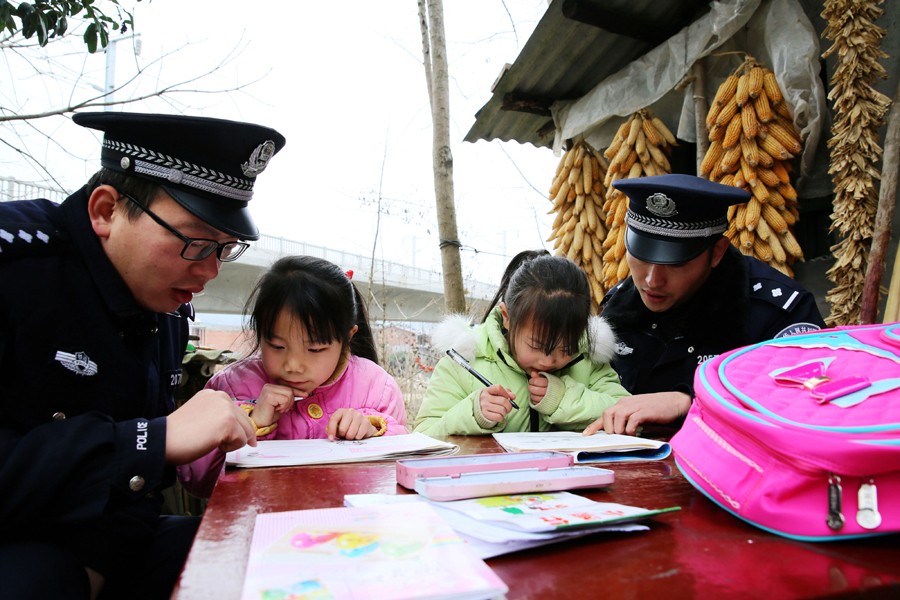當(dāng)天,民警在和老人交談中得知他們的兒子、兒媳年底才能回家,為讓老人小孩過(guò)上一個(gè)溫馨的“暖”年,王鵬帶著民警為他們收拾房間,張貼對(duì)聯(lián)、“!弊,當(dāng)大紅的對(duì)聯(lián)貼上門楹,小慧姐妹兩拿著民警送來(lái)的“福”字,激動(dòng)的在大門口拍照,要把照片發(fā)給爸爸、媽媽看。