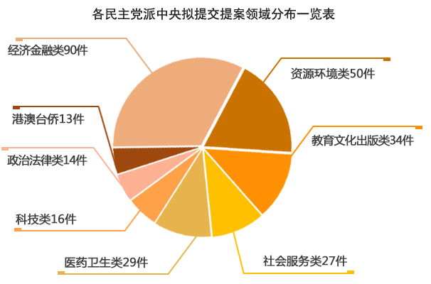 據(jù)初步了解,目前民革、民盟、民建、民進(jìn)、農(nóng)工黨、致公黨、九三學(xué)社、臺盟今年擬向全國政協(xié)提交提案共計(jì)334件(其中,黨派中央提案共299件,九三學(xué)社界別提案35件),涉及經(jīng)濟(jì)金融、資源環(huán)境、教育文化、醫(yī)藥衛(wèi)生、社會(huì)服務(wù)、科學(xué)技術(shù)等各領(lǐng)域。