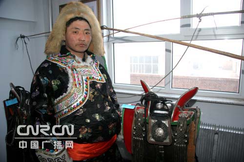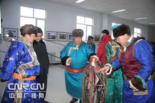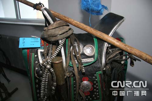 馬鞍、馬具與套馬桿 中廣網(wǎng)呼和浩特1月30日消息 (記者阿都?xì)J)千百年來,內(nèi)蒙古大草原孕育出燦爛的民族文化,保護(hù)、傳承一種歷史文化就等于擁有了一個世界。前不久,在內(nèi)蒙古東烏旗舉辦的第四屆“吉祥·烏珠穆沁”草原冰雪那達(dá)慕期間,這里舉辦了一個別開生面的馬具展覽。展出的馬鞍、馬具用呂、套馬桿等展品都是出自牧民之手。開展時展覽館人頭攢動,很是吸引觀眾的眼球。