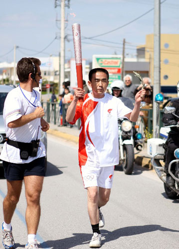 全二平今年35歲,這是他第一次出國(guó),以前最遠(yuǎn)就到過(guò)北京,還是為了參加奧運(yùn)火炬手的活動(dòng)。26日,全二平獨(dú)自乘機(jī)前往雅典,在法蘭克福轉(zhuǎn)機(jī)時(shí),遇到了語(yǔ)言障礙,好在遇上了一個(gè)國(guó)內(nèi)來(lái)的報(bào)社記者,順利到達(dá)雅典。
