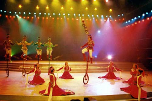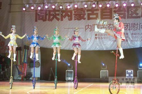 內(nèi)蒙古雜技團(tuán)的《五人踢碗》節(jié)目,2001年獲中國首屆“金菊獎”雜技比賽優(yōu)秀節(jié)目獎、最佳服裝設(shè)計獎,2004年獲“金獅獎”第六屆全國雜技比賽金獎,2005年獲第二十三屆朝鮮“四月之春”友誼藝術(shù)節(jié)金獎,2006年獲第七屆中國武漢國際雜技節(jié)金獎,2007年獲第二十三屆意大利金色馬戲節(jié)金獎和第二十八屆法國“明日”世界雜技節(jié)銀獎。(詠梅)(圖片來源:新浪赤峰 中國文化網(wǎng))