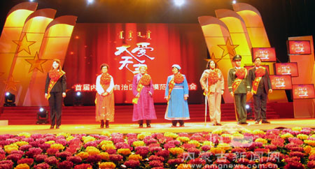 | 中廣網(wǎng)呼和浩特12月29日消息 12月28日晚,首屆內(nèi)蒙古道德模范頒獎(jiǎng)晚會(huì)《大愛(ài)無(wú)聲》在烏蘭恰特大劇院舉行。由自治區(qū)黨委宣傳部、文明辦、總工會(huì)、團(tuán)委、婦聯(lián)組織開(kāi)展的首屆內(nèi)蒙古道德模評(píng)選表彰活動(dòng),經(jīng)報(bào)名推薦、審核公示、群眾投票和評(píng)委評(píng)選等程序,李素琴等34名同志榮獲“全區(qū)道德模范”,張連云等109名同志榮獲“全區(qū)道德模范提名獎(jiǎng)”。