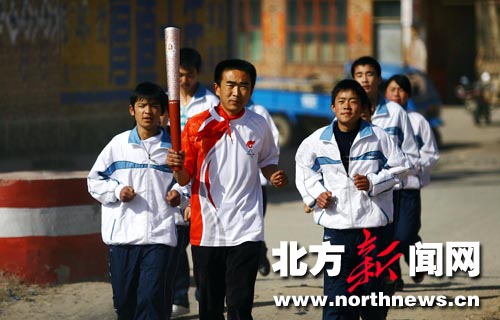 中廣網呼和浩特4月18日消息 中國綠衣天使北京2008奧運火炬手全二平作為第36棒火炬手高舉奧林匹克圣火,踏上了奧運會火炬在希臘的傳遞之路。4月16日,他又一次實現了自己的心愿,在自己的家鄉(xiāng)烏拉特前旗小佘太鎮(zhèn)舉行了一場別開生面的奧運火炬模擬傳遞儀式……
