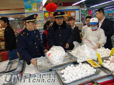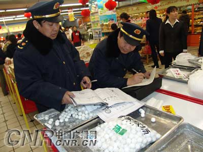 中廣網(wǎng)呼和浩特3月1日消息(記者文偉 通訊員李健 楊諾)為了讓市民安全的歡度元宵節(jié),春節(jié)過(guò)后,內(nèi)蒙古呼和浩特市工商局組織執(zhí)法力量對(duì)元宵節(jié)市場(chǎng)進(jìn)行了全面檢查,這次檢查主要檢查經(jīng)銷元宵的攤點(diǎn)是否證照齊全,對(duì)“三無(wú)”元宵一律下架處理。