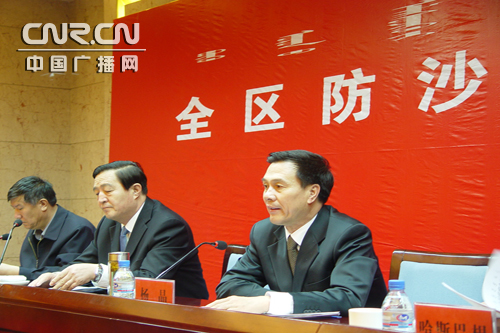 內蒙古自治區(qū)副主席雷?額爾德尼同志就全區(qū)防沙治沙作出全面部署,并同內蒙古14個盟市領導簽定了防沙治沙工作責任狀。