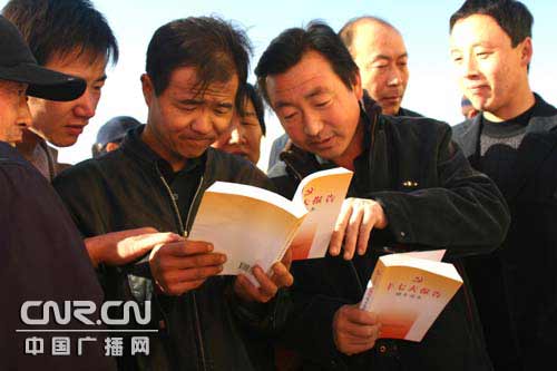 農(nóng)民爭讀十七大報告讀物(馬立峰 攝)