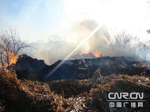 當(dāng)天上午9時44分,阿榮旗消防大隊接到那吉屯農(nóng)場水庫隊五馬架村村民報警后,立即出動1臺消防車和8名官兵快速趕赴現(xiàn)場。到達現(xiàn)場時2家民房后院草堆正在熊熊燃燒,已經(jīng)把鄰居家的草垛引著,如不及時處理,大火一旦再蔓延,周邊的民房極有可能造成火燒連營,后果不堪設(shè)想。