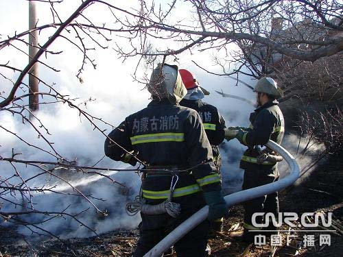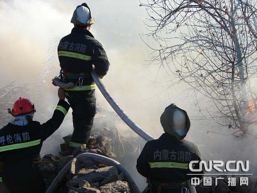 中廣網(wǎng)呼和浩特11月26日消息 (記者阿都欽 通訊員王保國)11月26日上午,內(nèi)蒙古阿榮旗那吉屯農(nóng)場水庫隊五馬架村2家草垛連著起火,危及周圍數(shù)戶民房和草垛,消防官兵快速出動排除險情。