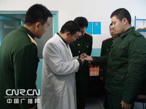 中廣網(wǎng)呼和浩特12月18日消息(記者鄭穎 通訊員馮常財(cái))為了確保新同志從生理、心理和身體上都能夠順利度過適應(yīng)期,盡快適應(yīng)新訓(xùn)環(huán)境,避免出現(xiàn)各種疾病,困擾新訓(xùn)生活,影響新訓(xùn)質(zhì)量。12月17日,呼倫貝爾支隊(duì)衛(wèi)生所開展了送醫(yī)送藥活動(dòng),派出醫(yī)術(shù)精湛的醫(yī)生對(duì)新同志進(jìn)行巡診,做到早發(fā)現(xiàn)、早治療、早恢復(fù),確保新訓(xùn)任務(wù)的圓滿完成。