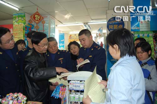 中廣網(wǎng)呼和浩特1月27日消息(記者文偉 通訊員李健)為了確保節(jié)日期間食品安全,切實(shí)維護(hù)消費(fèi)者權(quán)益,使廣大群眾高高興興歡渡節(jié)日。春節(jié)前夕,內(nèi)蒙古呼和浩特市工商局主要領(lǐng)導(dǎo)及320多名工商干部冒著風(fēng)雪嚴(yán)寒紛紛走向街頭,深入市場和企業(yè)向全市各食品經(jīng)營者和市場主辦者及廣大消費(fèi)者發(fā)放春節(jié)食品安全監(jiān)督管理有關(guān)規(guī)定。