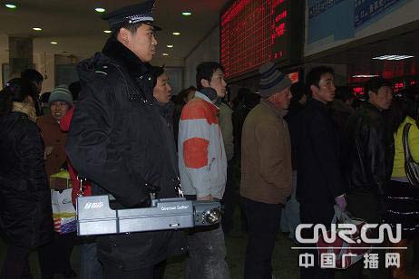 近日,由于春節(jié)臨近,鐵路客流明顯比平時(shí)增加。為防止旅客攜帶鞭炮等易燃易爆易腐蝕的危險(xiǎn)物品進(jìn)站上車,呼和浩特鐵路公安將2臺(tái)防爆新式武器——便攜式量子鼻炸藥探測儀與兩臺(tái)探測有效范圍方圓50米的遠(yuǎn)程炸藥探測儀在呼和浩特火車站投入使用,共同為春運(yùn)防爆工作助陣。據(jù)了解,價(jià)值為38萬元人民幣一臺(tái)可分辨炸藥的成分和種類的便攜式“量子鼻炸藥探測儀”具有輕便、操作簡單的特點(diǎn),只需5秒鐘,偽裝隱藏的炸藥違禁品立即現(xiàn)出原形,探測率達(dá)到100%。