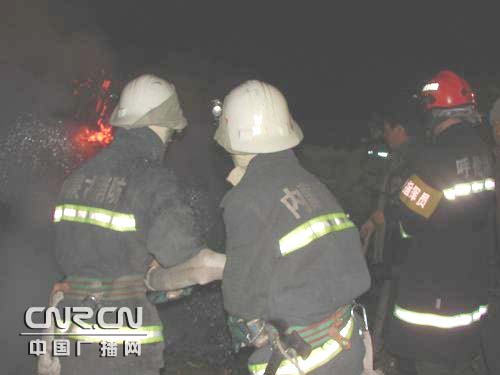 消防官兵奮力撲火 中廣網(wǎng)呼和浩特2月1日消息 (記者阿都欽 通訊員王保國)1月31日19時51分,內(nèi)蒙古阿榮旗消防大隊接到報警稱:新發(fā)鄉(xiāng)長發(fā)屯六組趙恩才家后院草垛發(fā)生火災。接到報警后,阿榮旗消防大隊立即出動2臺消防車迅速趕往現(xiàn)場,到場后合理采取戰(zhàn)術,圍堵了火勢蔓延,成功地阻止了一起農(nóng)村火災連營的發(fā)生。