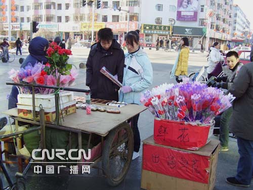 中廣網(wǎng)呼和浩特2月14日消息(記者阿都欽 通訊員紀明國)2月14日“情人節(jié)”這一天,內(nèi)蒙古扎蘭屯市各鮮花店生意格外紅火,玫瑰成為花店的當家花旦:紅玫瑰、藍玫瑰,白玫瑰、粉玫瑰、彩色玫瑰齊聚一堂,向“情人”們大拋媚眼。前來買花的人絡繹不絕,玫瑰花銷售火爆,人們精心挑選能代表自己祝福的鮮花種類。 在扎蘭屯市九日鮮花店里擺滿一捆捆各色玫瑰,銷售人員忙著修剪、包裝。據(jù)了解,這一天,全市各花店鮮花貨源充足,品種繁多、種類齊全,高中低檔不等。一些鮮花店還新增了“郁金香、藍色妖姬、綠色情人”及各種玫瑰系列等,使鮮花總量達到10多個種類近100個品種,價格從10元到160元錢。據(jù)九日鮮花店的經(jīng)理介紹說:情人節(jié)這天,鮮花價格有所上漲,但上調(diào)幅度較往年下降了很多,大多數(shù)消費者都能承受。 花店的插花師傅們還在包裝上采取了新潮做法,給鮮花系上絲帶,打上絲邊,讓十分漂亮的鮮花更加嫵媚動人;ㄉ虃兘o每束花都取了極富浪漫色彩的名字,如“緣定今生”、“愛的牽掛”、“愛你每一天”等等,由于在鮮花包裝上富有一定創(chuàng)意,成為鮮花店生意興隆的一個原因。