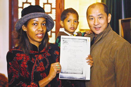 珍妮一家3口,珍妮手里是高祖父當年所乘航船的船單復印件