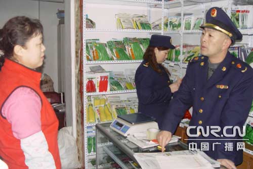 工商人員在一銷售點(diǎn)對種子進(jìn)行檢查