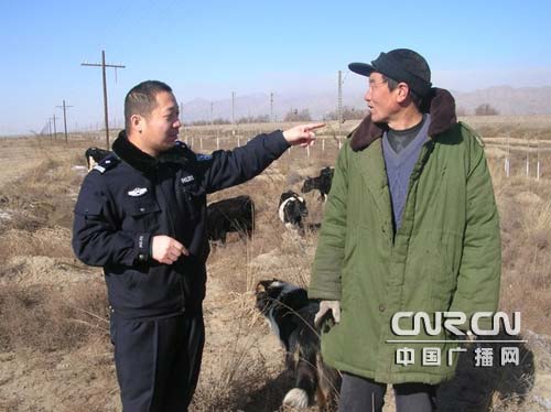 民警正在向養(yǎng)牛戶(hù)宣傳鐵路安全知識(shí)