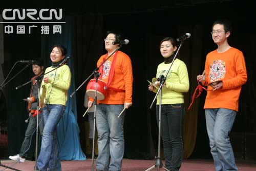 開(kāi)播進(jìn)農(nóng)家活動(dòng)中,主持人為呼和浩特郊區(qū)農(nóng)民獻(xiàn)上自編節(jié)目《三句半》