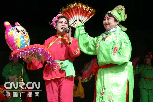鄉(xiāng)親們登臺(tái)表演二人臺(tái)《五哥放羊》