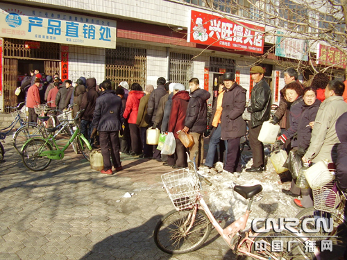 3月1日上午,在扎蘭屯市布特哈路淳江油脂有限責(zé)任公司一糧油產(chǎn)品直銷處,記者看到前來買散裝豆油的市民絡(luò)繹不絕。百余名市民排隊搶購。記者從排隊市民處了解到,她們大多數(shù)是早晨6點鐘左右前來排隊的,大多數(shù)是老人和中年人。據(jù)其中一位排隊老人介紹, 春節(jié)前, 散裝豆油賣12.30元/公斤,從2月29日起,散裝豆油賣13.03元/公斤,每公斤漲0.73元。幾個拎桶來買散裝豆油的市民均表示,為防再漲價,就多買些,放著也壞不了。記者又從糧油產(chǎn)品直銷處的工作人員那了解到,每一個市民只限于購買2.5公斤,而且是排隊購買。