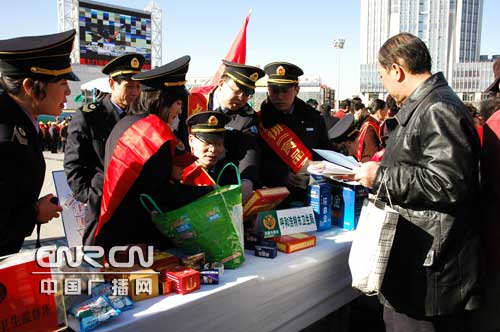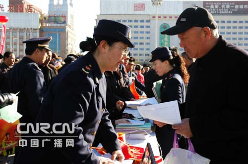 今年消費(fèi)者權(quán)益保護(hù)日的主題為“消費(fèi)與責(zé)任”,來自工商行政管理、食品藥品監(jiān)督管理、質(zhì)量技術(shù)監(jiān)督、價格監(jiān)督檢驗(yàn)、衛(wèi)生監(jiān)督、司法等部門,以及電信、供電等企業(yè)的工作人員不斷向群眾發(fā)放宣傳材料,耐心解答疑問和受理投訴。
