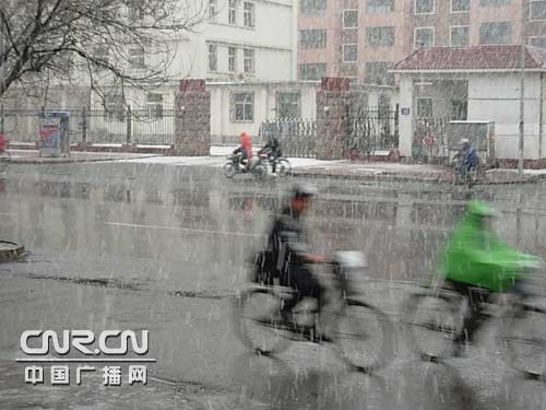 中廣網(wǎng)呼和浩特3月22日消息(記者文偉 通訊員任艷軍) 22日早晨8點(diǎn)多,突降大雪,大雪如鵝毛般從天而降。記者從內(nèi)蒙古氣象局了解到:此次降雪從巴彥淖爾市及以東地區(qū)普遍有小雨或雨夾雪。其中,鄂爾多斯市、包頭市南部、呼和浩特市、烏蘭察布市南部、錫林郭勒盟西部有小到中雨或雨夾雪。東北部地區(qū)有中雨夾雪或雪。阿拉善盟西部有揚(yáng)沙或浮塵天氣。