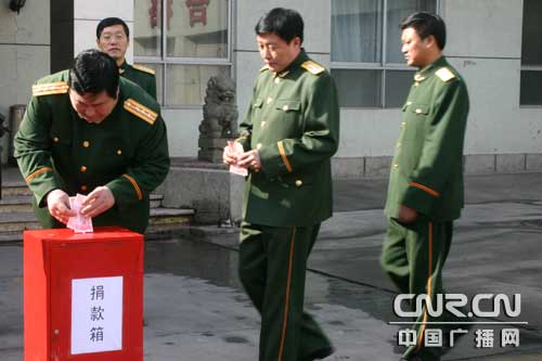 中廣網(wǎng)呼和浩特4月9日消息(記者鄭穎、劉俊霞)4月9日上午,在溫暖的春日下,內(nèi)蒙古消防總隊(duì)193名機(jī)關(guān)干部為興安盟11名貧困學(xué)生捐款3萬(wàn)多元。內(nèi)蒙古消防總隊(duì)后勤部副部長(zhǎng)錢占福介紹,本次捐款之后,消防總隊(duì)還會(huì)建立“一對(duì)一”幫扶,直到11位學(xué)生完成學(xué)業(yè)為止。 據(jù)了解,內(nèi)蒙古消防總隊(duì)對(duì)內(nèi)蒙古興安盟貧困地區(qū)的幫扶已有近三年時(shí)間。自2006年起,消防總隊(duì)定點(diǎn)幫扶興安盟貧困地區(qū)科右中旗東白音套海嘎喳貧困戶。在過(guò)去的兩年中,幫扶工作從治理荒山生態(tài)建設(shè)入手,開展以水澆地建設(shè)和林草業(yè)建設(shè)為主要內(nèi)容的農(nóng)田草木場(chǎng)建設(shè)和脫貧致富為目標(biāo),狠抓深水井水泵灌溉和電網(wǎng)改造,解決農(nóng)民用水、照明用電問(wèn)題,為當(dāng)?shù)剞r(nóng)牧民解決看病難實(shí)際困難,開展了一系列幫扶工作,起到了良好的效果。