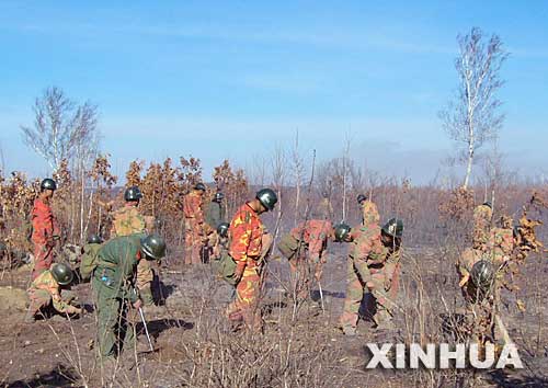 2006年5月7日,森林警察官兵在清理火常5月6日晚,森林警察官兵徹夜奮戰(zhàn),將內(nèi)蒙古大興安嶺火災(zāi)最后一個(gè)火場查拉巴奇火場的明火撲滅。5月7日,大楊樹林業(yè)局查拉巴奇火場實(shí)現(xiàn)無火、無煙、無氣的“三無”狀態(tài)。至此,“55”內(nèi)蒙古大興安嶺火災(zāi)被全部撲滅。 新華社發(fā)(蘇鳳亭攝)