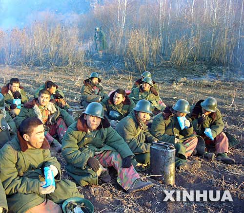 2006年5月6日,森林警察部隊(duì)在夜戰(zhàn)前用晚餐。新華社發(fā)(蘇鳳亭攝)