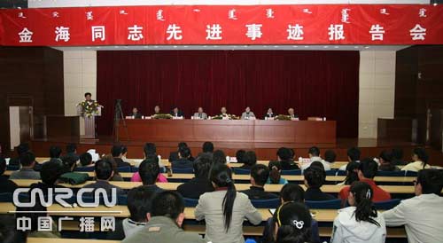 中廣網(wǎng)呼和浩特4月24日消息(記者文偉 通訊員王彥軍)獻(xiàn)身科研、教書育人的師德楷模,內(nèi)蒙古大學(xué)優(yōu)秀教師金海同志先進(jìn)事跡報(bào)告會,2008年4月23日下午在內(nèi)蒙古大學(xué)學(xué)術(shù)會議中心舉辦。