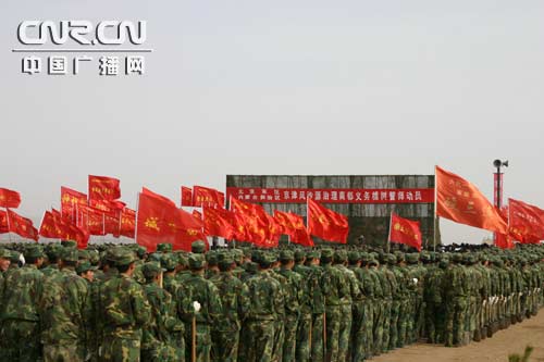 中廣網(wǎng)呼和浩特4月26日消息(記者文偉 內(nèi)蒙古臺杜少俊 烏蘭察布臺護群)北京軍區(qū)、內(nèi)蒙古軍區(qū)京津風(fēng)沙源治理商都義務(wù)植樹誓師動員大會26日上午在商都縣七臺鎮(zhèn)舉行。誓師動員大會現(xiàn)場,彩旗飄揚。北京軍區(qū)、內(nèi)蒙古軍區(qū)6000名官兵和商都縣干部職工、民兵、預(yù)備役、學(xué)生共1萬多人參加誓師動員大會。