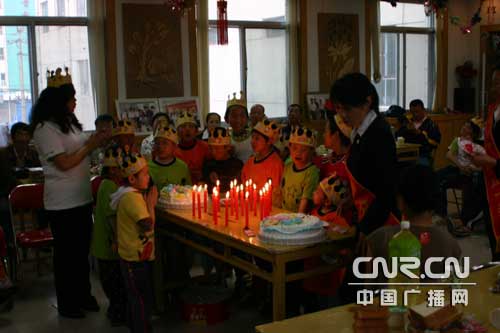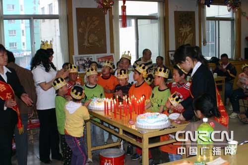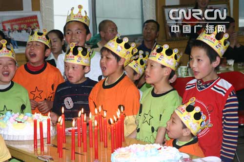 呼和浩特兒童福利院坐落在呼和浩特市回民區(qū)縣府街,現(xiàn)有290多名被收養(yǎng)的孩子。在得知汶川地震后,福利院的老師和孩子們都深感痛心。昨日,是福利院孩子們的生日,福利院的老師告訴記者,到這來的孩子都不知道自己的生日,所以每過一段時間,我們就會集體為一批孩子們過一次生日。因為福利院也是一個受捐助的機構,所以,我們將用今天給孩子們過生日的時間,以孩子們自己的方式,為災區(qū)人民祈福。也讓孩子們在每一個生日的時候都能想起這件事。在災難面前我們都是中國人。