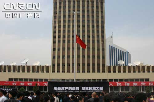 5月19日14時28分起,呼和浩特新華廣場舉行悼念活動,參加活動全體人員默哀3分鐘,沉痛悼念四川汶川大地震遇難者。非運營狀態(tài)中的所有車輛同時鳴笛,向地震遇難者致哀。