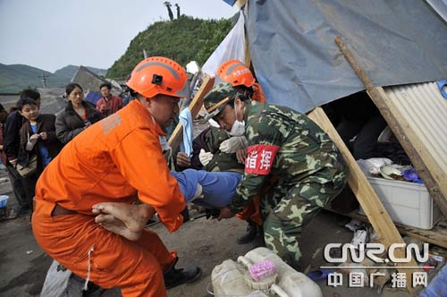 內(nèi)蒙古消防員救援隊(duì)5月14日來(lái)到災(zāi)區(qū)進(jìn)行救援。目前,救援隊(duì)的工作重點(diǎn)轉(zhuǎn)移到救助傷員上。