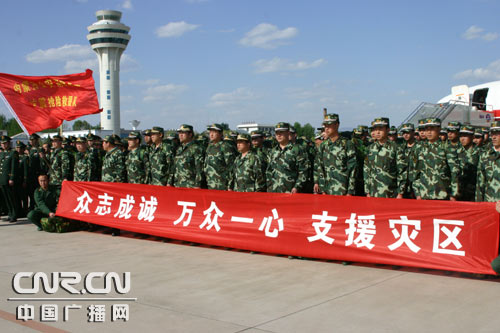 我們150名官兵,懷著內(nèi)蒙古2800萬(wàn)人民和總隊(duì)3500名官兵的深情囑托,帶著不奪全勝、不完成任務(wù)誓死不回頭的決心和只要一息尚存就不退出陣地的信心,踏上了赴川抗震救援的征途,從登上飛機(jī)的那一刻起,我們的戰(zhàn)士一直斗志高昂,心情迫切,恨不得立即趕到災(zāi)區(qū),幫助災(zāi)區(qū)人民渡過(guò)難關(guān)。我們很多戰(zhàn)士都是第一次坐飛機(jī),那些平素里美麗端莊優(yōu)雅得近乎高傲的空姐,在飛機(jī)上不停地與我們這些老實(shí)得近乎傻氣的戰(zhàn)士打招呼、合影,這些常年在水里火里打拼的戰(zhàn)士,平時(shí)只知道攀墻躍架,哪見(jiàn)過(guò)這陣勢(shì),略顯靦腆。我想,別說(shuō)這些展示了,即便是我們,在平時(shí)也根本沒(méi)有機(jī)會(huì)與空姐合影,是因?yàn)槲覀円闳槐几翱拐鹁仍痪(xiàn)的行動(dòng),才得到了那么多人的尊敬。只有英雄才會(huì)與美麗結(jié)緣。