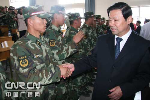 儲(chǔ)波親切慰問(wèn)內(nèi)蒙古公安消防部隊(duì)赴四川抗震搶險(xiǎn)一線部分調(diào)防回蒙官兵
