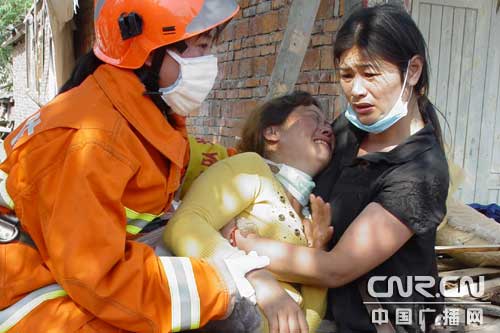 王悅:一聲媽媽喚醒休克家屬 我是全國首支現(xiàn)役制女子消防中隊(duì)的首任隊(duì)長,光環(huán)在我頭上籠罩,責(zé)任也在我肩上承擔(dān)。汶川地震,牽掛著我們女子消防中隊(duì)每個(gè)隊(duì)員的心,赴川參加抗震救災(zāi)也是我們義不容辭的責(zé)任。地震發(fā)生后,我們?nèi)w女兵簽名向支隊(duì)遞交了請(qǐng)戰(zhàn)書。17日晚上22:00,支隊(duì)黨委向中隊(duì)發(fā)出了參與救災(zāi)行動(dòng)的通知。凌晨1:00,我?guī)ьI(lǐng)選拔出的10名女戰(zhàn)士出發(fā),立即趕往南壩鎮(zhèn)與先期到達(dá)的總隊(duì)救援隊(duì)匯合。在救援一線我們發(fā)揚(yáng)巾幗不讓須眉的作風(fēng),同男隊(duì)員們一起搬磚塊、抬樓板,用手一點(diǎn)點(diǎn)地打通廢墟。同時(shí),給隊(duì)友們做好伙食補(bǔ)給、后勤保障,對(duì)被困家屬做心理疏導(dǎo)和安慰。在每一個(gè)救援現(xiàn)場,周圍都會(huì)聚集很多遇難者家屬,他們焦慮的目光、悲痛的哭聲緊緊揪著隊(duì)員們的心。在一棟完全坍塌的居民樓旁,一位婦女帶著兩個(gè)男孩子在廢墟前焦急地期待自己的丈夫能有生還的希望,可在這片已經(jīng)化為烏有的廢墟中幾乎沒有了生命的跡象,絕望中婦女多次發(fā)生昏迷。當(dāng)時(shí),我們正在附近救援,戰(zhàn)友們看到了這一幕,急忙上前施救:為她撐起遮陽傘,給她喂水喝……。兩個(gè)孩子抱著昏倒在地的母親害怕地喊著:“媽媽”可昏迷的母親依然沒有醒過來,看著昏迷的母親和兩個(gè)傷心欲絕的孩子,我們不由自主一起大聲跟著喊“媽媽,媽媽……”。幾分鐘后,昏迷的母親在十幾個(gè)“孩子”的呼喚聲中終于蘇醒過來。通過我們耐心安慰,這位母親終于將情緒穩(wěn)定下來,含著淚水發(fā)出微弱地說了聲,孩子,謝謝你們。