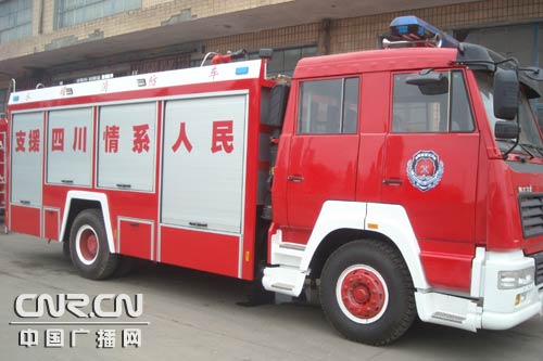 公安部消防局確定內(nèi)蒙古消防總隊對口支援四川消防總隊成都大邑大隊恢復(fù)執(zhí)勤備戰(zhàn)任務(wù)后,內(nèi)蒙古消防總隊黨委高度重視,于6月11日召開黨委會,成立了臨時領(lǐng)導(dǎo)小組,并立即籌集100萬元資金,于當(dāng)日匯往四川省消防總隊成都支隊大邑大隊,保證消防大隊能夠迅速購置基本辦公設(shè)備、通訊設(shè)備、執(zhí)勤裝備、交通工具和官兵及家庭損毀住房等急用。同時,總隊與安徽消防器材生產(chǎn)廠家聯(lián)系,讓其抓緊準(zhǔn)備一臺總隊先期訂購的價值50萬元的斯太爾王8噸消防水罐車和器材裝備,并派裝備處長和一名有豐富駕駛經(jīng)驗的駕駛員,乘飛機(jī)趕赴安徽接車。接車的2名人員于11日晚抵達(dá)安徽后,即對消防車隨車器材進(jìn)行了仔細(xì)的檢查,并于6月12日從安徽起程,采取輪流駕駛的方法,馬不停蹄直接送往成都市。