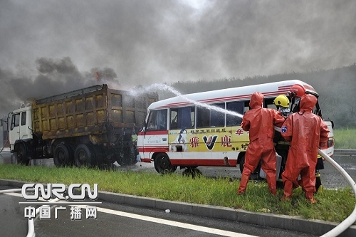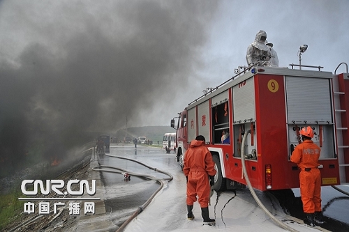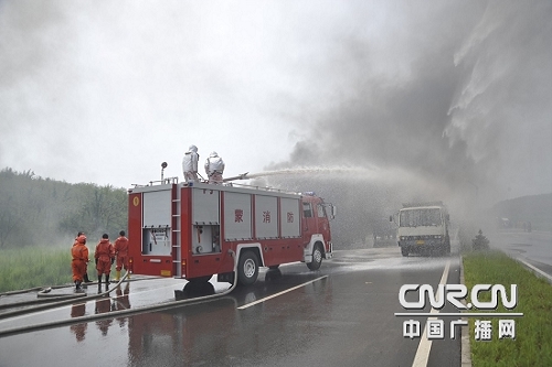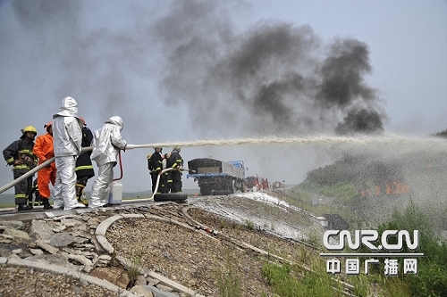 | 中廣網(wǎng)呼和浩特7月28日消息(記者鄭穎 通訊員馮常財) 7月28日上午9時31分,蒙黑兩地多警種跨區(qū)域滅火救援聯(lián)合實戰(zhàn)演習(xí)在內(nèi)蒙古呼倫貝爾市阿榮旗通往廣西北海的省際大通道21公里處成功舉行。這是內(nèi)蒙古自治區(qū)與黑龍江省首次消防區(qū)域協(xié)作,也是北京奧運會前的一次規(guī)模較大的跨區(qū)域?qū)崙?zhàn)滅火救援演習(xí)。