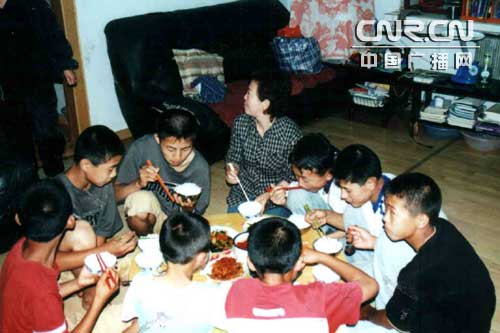 在第24個(gè)教師節(jié)來臨之際,記者對(duì)她的家人進(jìn)行了一次特殊的采訪,因?yàn)椴稍L時(shí)主人公尹福和她的丈夫應(yīng)邀去深圳出差不在家。接待記者的是尹福老師的妹妹尹胡蘭和尹老師的女兒鄭玉順,還有最小孩子??12歲的非常有禮貌的男孩兒(智障)尹恩生。尹胡蘭因?yàn)榻憬愫徒惴蛲瑫r(shí)出差,而現(xiàn)在孩子們都已經(jīng)開學(xué)了,需要有人給孩子們做飯和看管他們,所以尹胡蘭就立即放下自己《扎蘭屯市百拇養(yǎng)生館》的生意,趕到成吉思汗鎮(zhèn)姐姐家?guī)兔。尹胡蘭微笑著說她很喜歡這些孩子,因?yàn)榻憬惆阉麄兘逃枚、體貼、上進(jìn)、優(yōu)秀,使每個(gè)見了他們的人都喜歡。尹胡蘭談起尹福老師收養(yǎng)孤兒這12年中的難忘故事時(shí)說:“難忘的事情多得象星星,實(shí)在是數(shù)也數(shù)不清;姐姐的艱辛付出得太多了,同樣善良的姐夫也付出了很多。孩子們小的時(shí)候都是姐姐用雙手給孩子們洗涮、姐夫鄭三俊給孩子們燒鍋爐幫做飯。姐姐好多次因?yàn)橄刺嗟谋粏味央p手的手脖子骨頭累得同時(shí)凸出來、疼得叫起來,眼淚滾下來,也從此落下了病根,現(xiàn)在雙手不能拿重東西。能把這些孩子撫育健康長大、成為對(duì)社會(huì)有用的人就是姐姐和家人最大的滿足!痹诩胰搜劾,雖然起初不太理解姐姐的做法,因?yàn)槟菚r(shí)姐姐一邊工作一邊做買賣,而且有存款?墒12年來為了撫養(yǎng)這些全是男孩兒的孤兒,尹福老師花掉了自己30多萬元的全部積蓄。尹老師家每頓燜米飯都要5、6碗大米,吃飯時(shí)都是兩桌子,在外人看起來不象家庭倒象飯店。現(xiàn)在這些孩子長大了,都挺起了各自的職責(zé),他們輪流燒火、掃地、洗菜、刷碗。