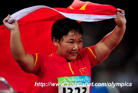 9月13日,在國家體育場進(jìn)行的北京2008年殘奧會女子鐵餅F40級決賽中,孟根吉米素以28米04的成績奪冠,并打破世界紀(jì)錄。 蒙古族姑娘孟根吉米素的奪冠讓人感到欽佩。年僅17歲的孟根吉米素天生患有生長激素缺乏癥。出生沒多久媽媽就出走了,由于爸爸常年在外打工,家里只有奶奶一個親人,小小的她從幼年時便分擔(dān)起家里的活計(jì),生活的磨礪得到了造就了她堅(jiān)韌的性格,所以我們向她送去了鮮花。