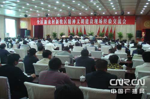 | 中廣網(wǎng)呼和浩特9月20日消息(記者那森寶音 實(shí)習(xí)記者李煒填)內(nèi)蒙古自治區(qū)新農(nóng)村新牧區(qū)精神文明建設(shè)現(xiàn)場(chǎng)經(jīng)驗(yàn)交流會(huì)9月17日在通遼市召開。會(huì)議強(qiáng)調(diào),必須把精神文明建設(shè)擺在新農(nóng)村新牧區(qū)建設(shè)的突出位置,融入到農(nóng)村牧區(qū)經(jīng)濟(jì)社會(huì)發(fā)展的各個(gè)方面,以精神文明建設(shè)的新成效,不斷推動(dòng)新農(nóng)村新牧區(qū)各項(xiàng)建設(shè)取得新進(jìn)展。