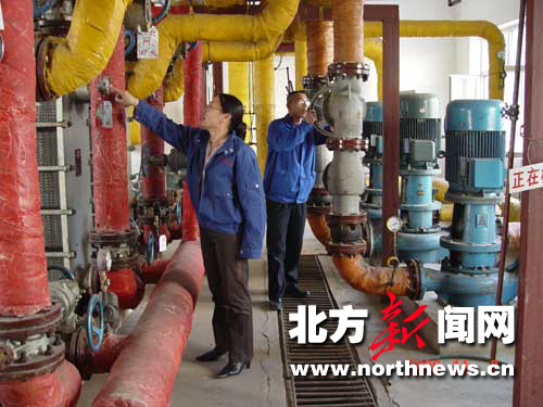 呼和浩特市城發(fā)供熱分公司員工正在調(diào)試設(shè)備