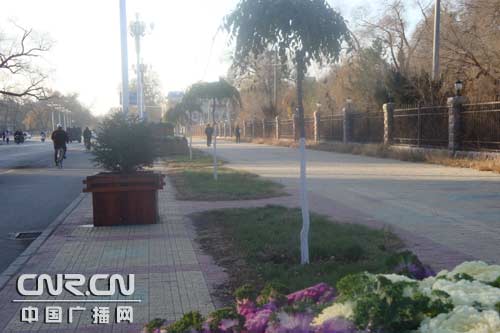據(jù)園林部門(mén)介紹,城市園丁們已經(jīng)在近日為扎蘭屯市區(qū)一萬(wàn)多株樹(shù)們?nèi)紦Q上了越冬的雪白“棉裙”??刷上了防啃青、防病蟲(chóng)害的涂白。在下月初還將為這些穿了“棉裙”的樹(shù)們?cè)贊采戏纼鏊,讓它們(cè)诒┲幸廊痪`放美麗,并使其成為耀眼生命最顯眼的迎風(fēng)旗幟。